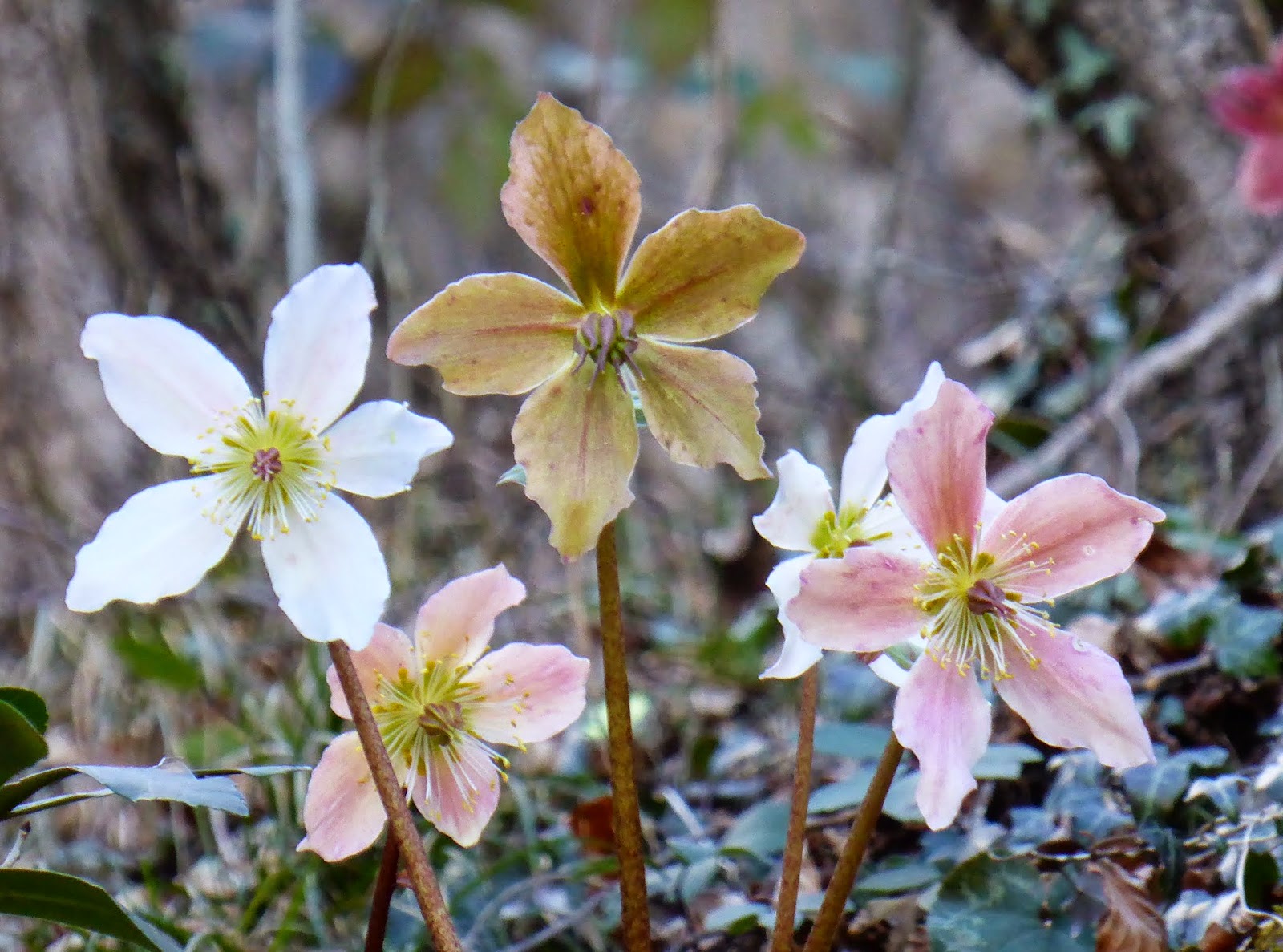 Hier auf der Schattenseite des Berges treffen wir noch auf zahlreiche (ver)blühende Christrosen. (Die Hauptblütezeit dauert von Dezember bis März.) |